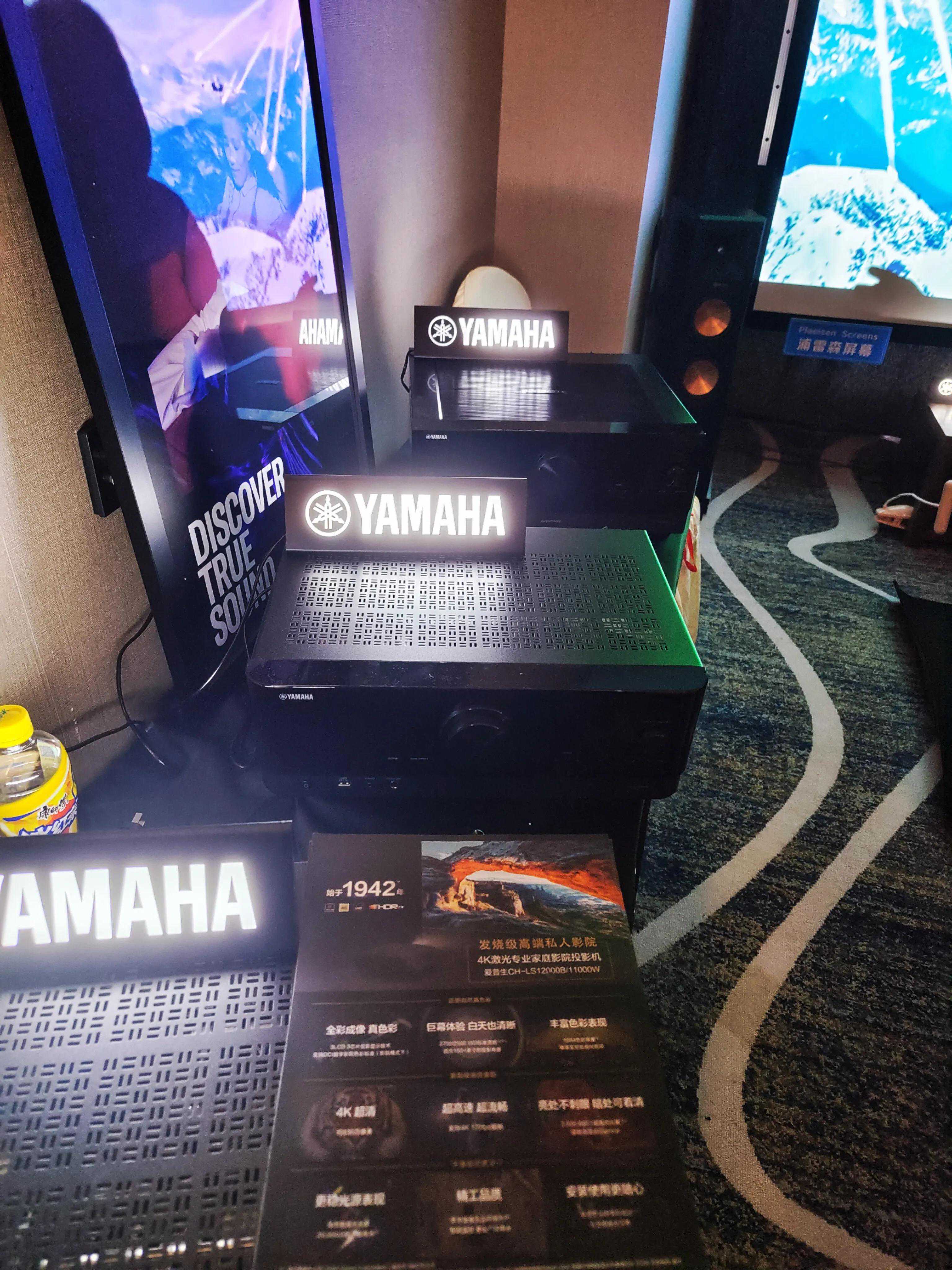 没走几步,看到最让我激动的了,YAMAHA最新款合并式旗舰功放A8A在展示AV效果。终于找到对胃口的了。赶紧进屋坐下,给工作人员说,放点大动态片段来听听。工作人员一顿操作,开始放《壮志凌云2》。