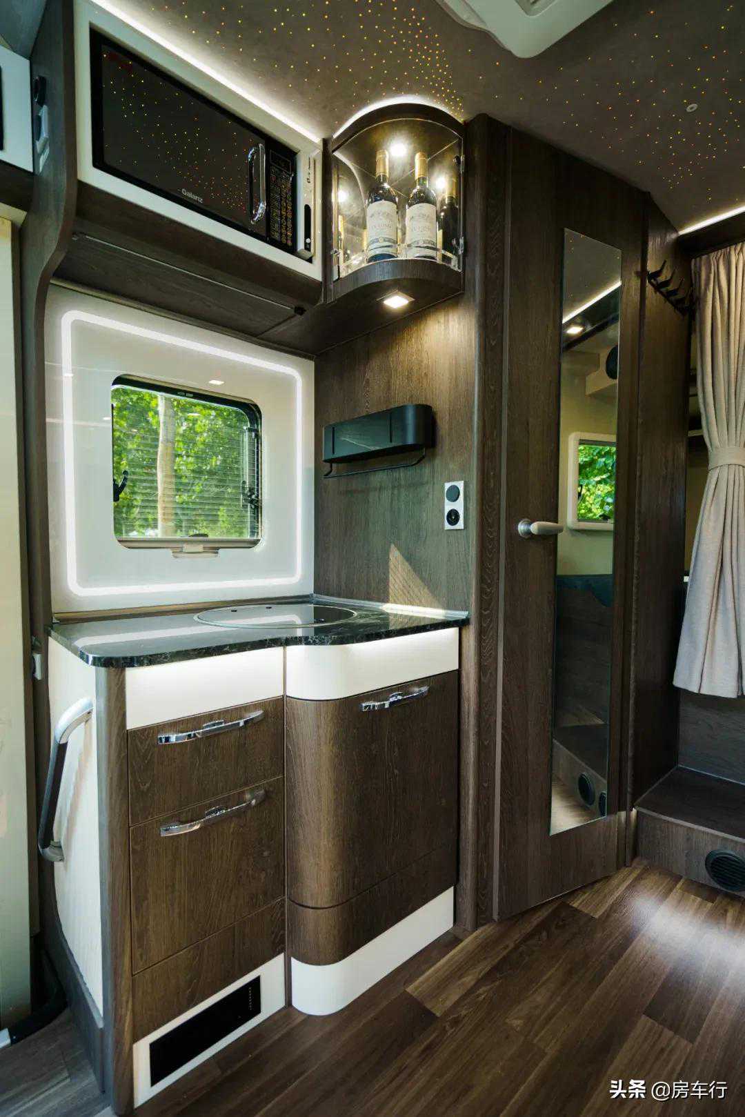 独立封闭式厨房间配有超大操作台面、电磁炉、微波炉、洗菜池、独立水龙头、丰富的储物空间等,超大操作空间,充分满足日常车内烹饪;