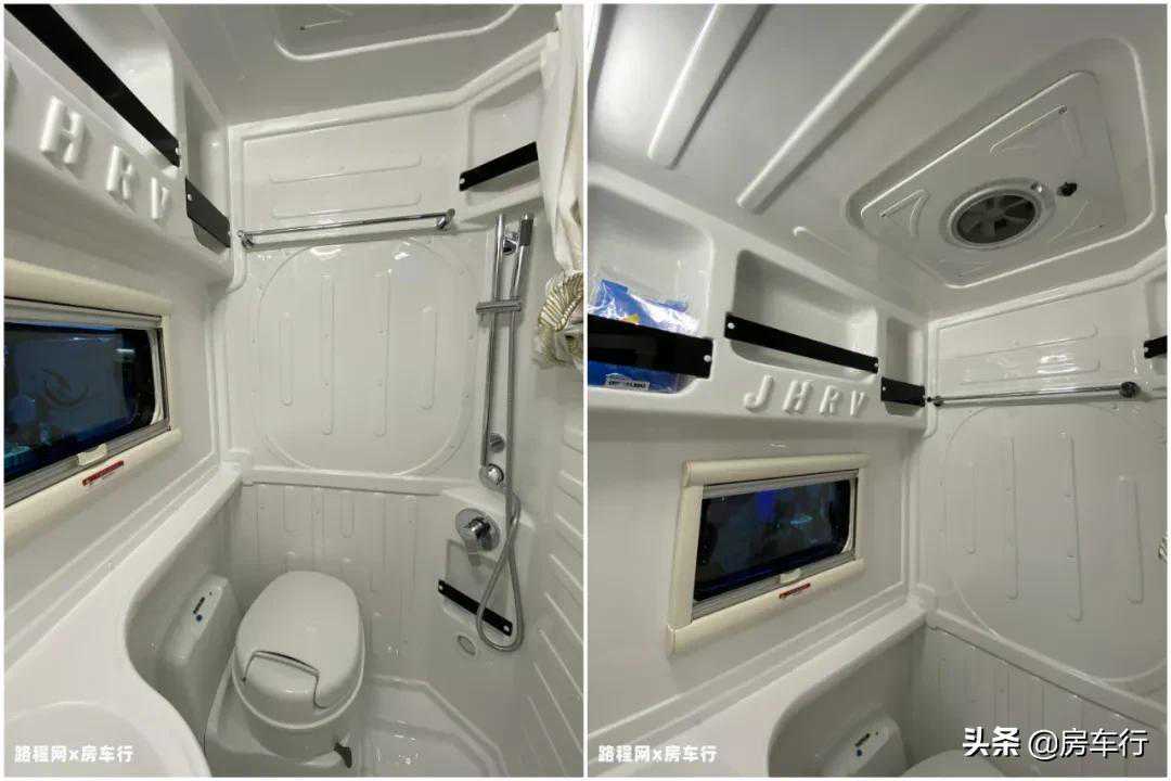 卫浴间干湿一体设计,并配置了进口水封电动粉碎式坐便器、进口智能⻢桶盖、美式⿊⽔箱顶置排⽓装置、进口Max十速卫⽣间换⽓扇、独立淋浴花洒等;水电方面整车标配300L清水箱、50L灰水箱、50L黑水箱、345V62AH锂电(约21.39度电)、6600W充逆变一体机、750W顶置太阳能电池板等;