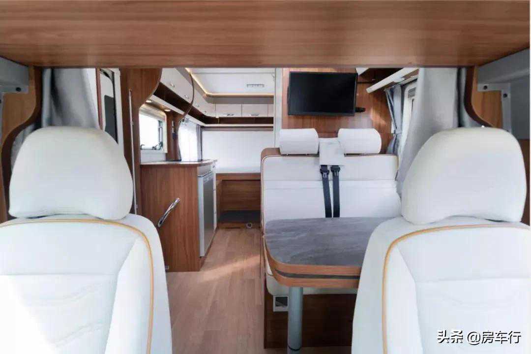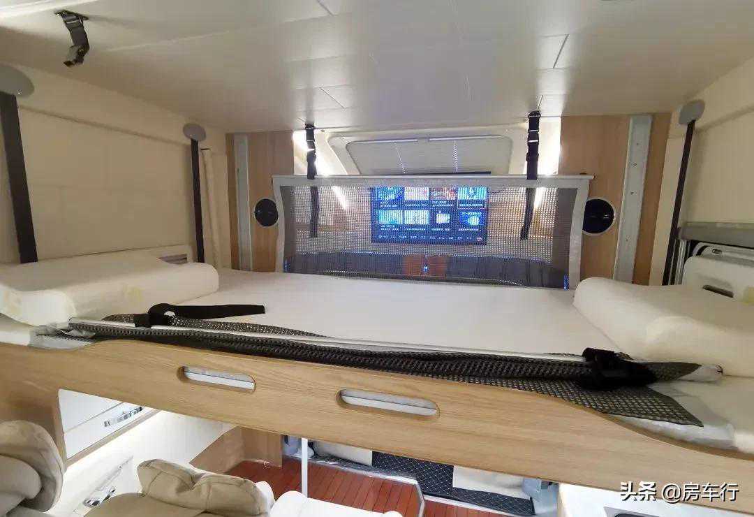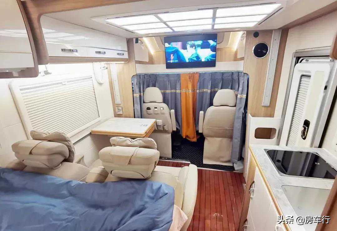 除了豪华的车身外,内饰同样高端;NAPPA真皮沙发,进口地砖纹地板革,进口玉石台面,欧洲工艺进口防火环保板材,美观大气,整体营造温馨舒适的居住氛围;额头双人床底部设有40寸智能电视;