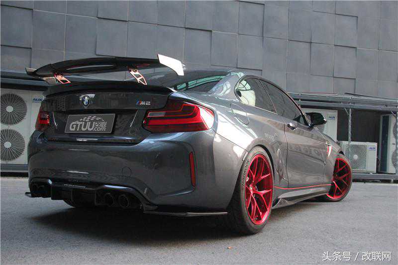 相对于长滩蓝的“妖艳”,矿石灰的M2显得“低调”。同样是全套碳纤维空力套件,尽管颜色与车身接近,但骚气的CSBSR52VLX轮毂完完全全将它暴露了,红色的跑鞋搭配了KWClubsport3-Way避震,强大的绞牙避震能够适应绝大多数路面的需求,加上HR防倾杆的加入,不管是跑街还是下赛道都游刃有余。