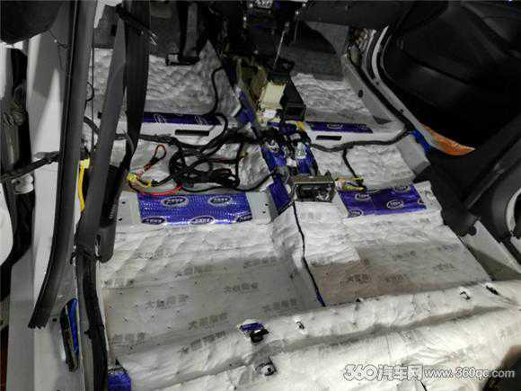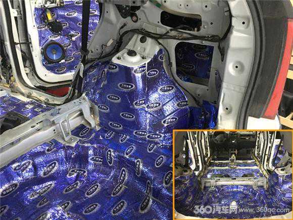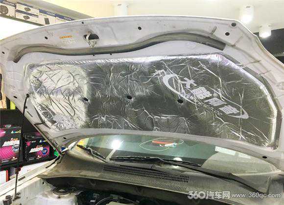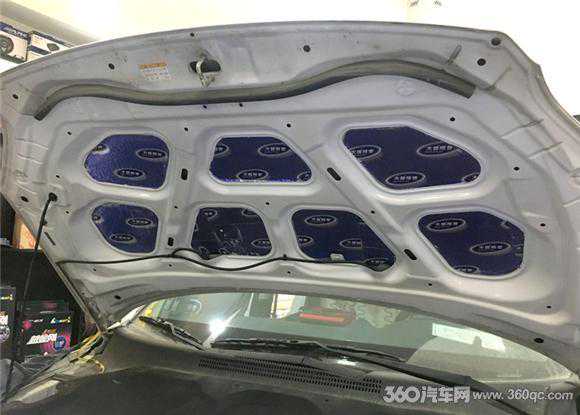隔音部位:引擎盖、车门、底板、叶子板、尾箱;隔音材料:大能蓝金刚止震板、温莎吸音白棉、低频王、银卫士引擎盖隔热棉;施工店家:西安车乐汇汽车音响改装。