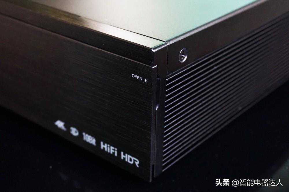 金属防尘前面板镭射了图标,可以看出4KUHD和HiFi是其主打。