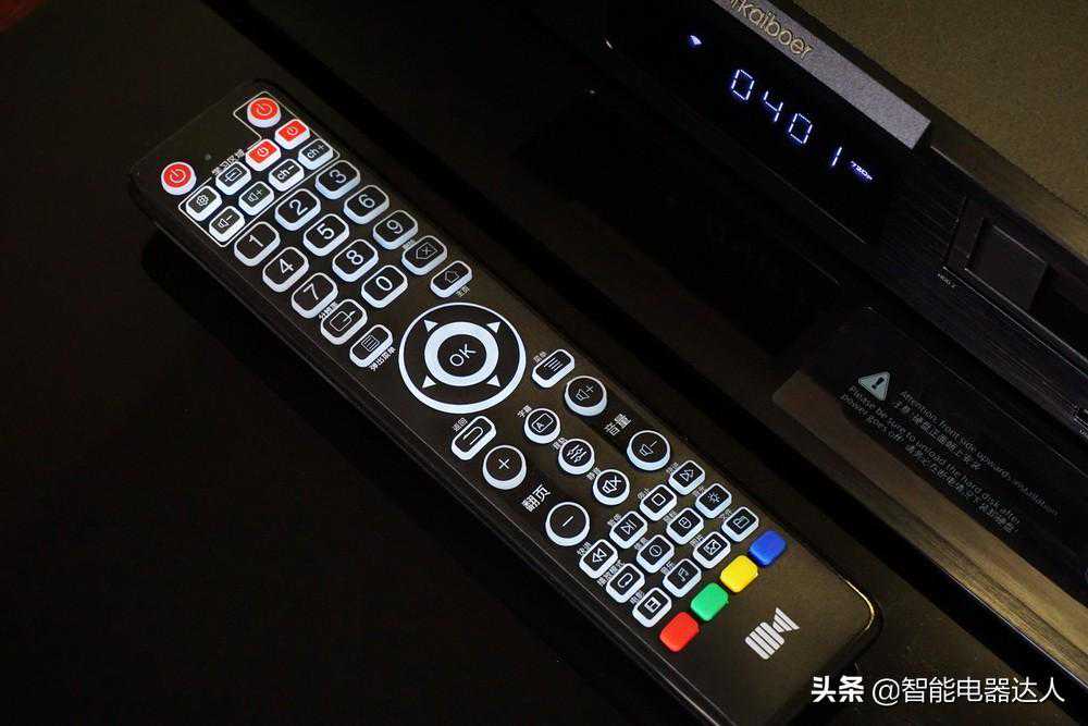 标配蓝牙红外二合一遥控,360°盲按键位瞬间响应,按住菜单和翻页减这两个按键可进行蓝牙配对,配对之后可360°控制,非常方便。遥控器为54键全功能设计,包括学习区、数字区、功能区以及播控区,内置空鼠功能,四色功能键支持功能自定义,支持一键切换分辨率,之前经常遇到过播放器接入老投影时因为分辨率过高而黑屏,有了一键切换分辨率就非常好办了,这个功能挺实用的。