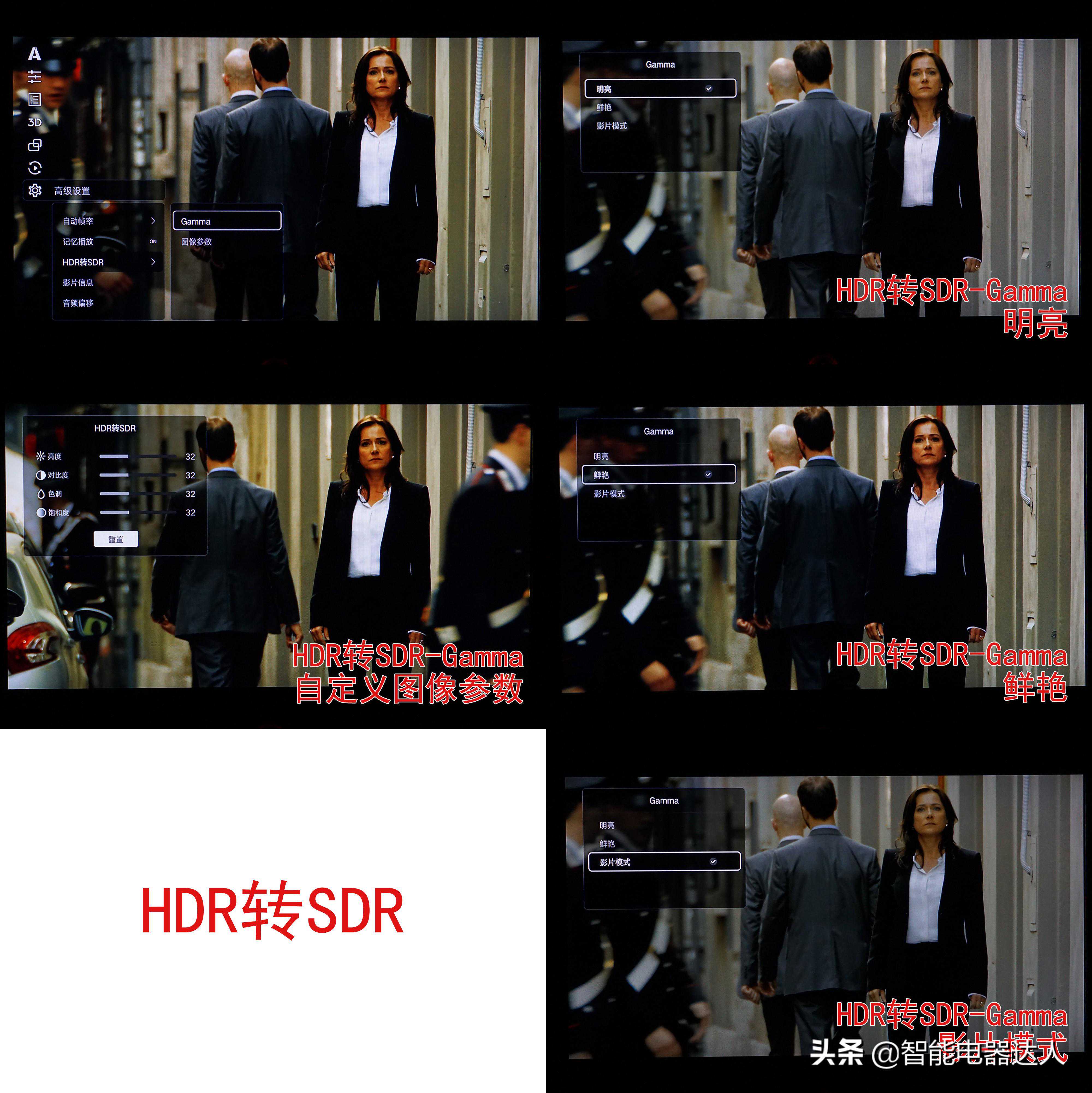 开博尔Q50支持HDR转SDR输出,非常人性化的设计,能够满足不支持HDR的显示设备,并且提供图像调节选项,实际测试,HDR转SDR输出选项在鲜艳模式下,色彩表现最佳。