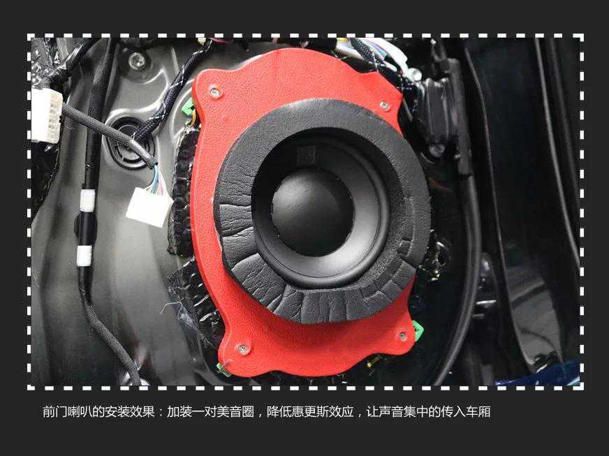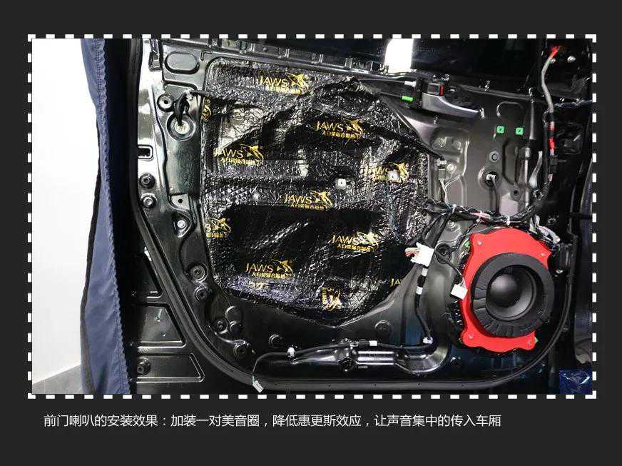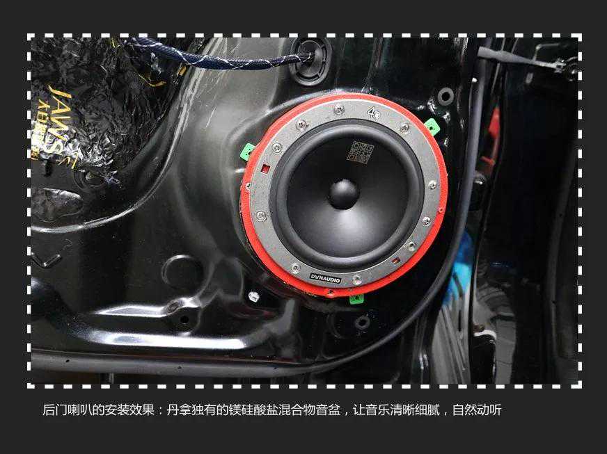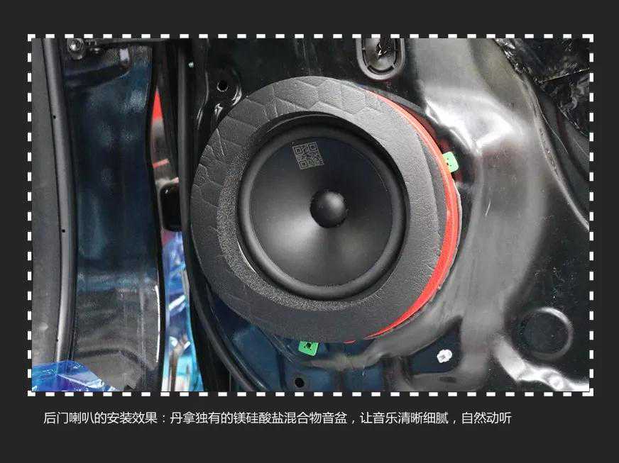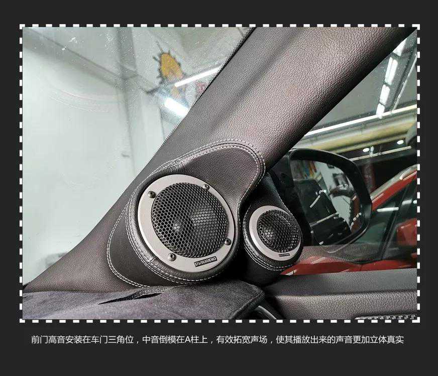 前声扬升级了丹拿ESOTAN372三分频套装喇叭,它的中低音原位无损安装,不会破坏原有的线路,而高音安装在车门三角位上,中音则倒模在A柱,这样的安装方式不仅让高频与中频有较好的衔接,也可以拓宽声扬,让喇叭播放出来的声音更加立体真实。
