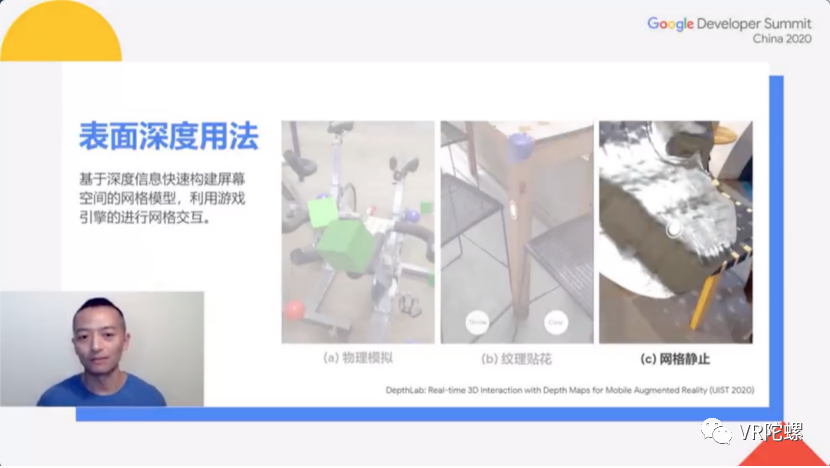 周克忠还介绍了目前团队发表的论文《DepthLab:Real-time3DInteractionwithDepthMapsforMobileAugmentedReality》(UIST,2020),论文主要关于如何从深度信息实现以上功能,以及深度信息可以开启怎样的应用场景。