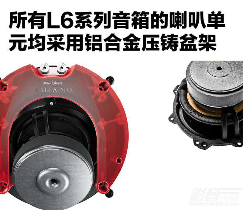 与此同时,L6系列还延续了势霸标志性的音色,尤其是在中高频部分:通过参照高标准的歌剧院新星系列的声学设计解决方案,采用了相同规格的专利29mm口径飞箭DAD(DampedApexDomeTM)技术顶点阻尼丝质软球顶高音单元。该高音单元在振膜顶点前设计了一个“子弹头”造型的组件,这其实是一个阻尼相位锥,可以扩宽高频的扩散性,降低振膜失真并提高响应速度,如今这些技术已经应用到SonusFaber几乎所有音箱产品上,成为势霸一项引人注目的亮点。