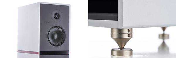 箱体内部根据单元配置区分为四个腔室,隔间依然采用铝合金板。高音和中音单元背后皆为封闭的独立腔室,下方低音所使用的腔室则有通道相连,还有开口导出,开口位置就在下半截的低音箱体上下两侧,各为一长条状的通道,是为低音反射式设计。前文说到Alumine5是Reference系列的技术下放,最重要的一点,就是用上Reference系列的高音和中音单元。高音单元是一只钕磁铁驱动的1吋丝质软半球高音,中音单元也是钕磁铁系统驱动,口径是6.5吋,低音则一共享上两颗10吋单元。值得一提的是,像Alumine5这么高价的音箱,Stenheim竟然没有跟随当前Hi市场那样,用上钻石或铍振膜等罕见材质;虽然原厂没有提到中音和低音振膜材质,却罕见地在中音和低音单元悬边用上了绉折式布边。Stenheim还特别为单元设计了浅号角开口,均可见于高音、中音和低音单元上,具有一定控制扩散角度、提高单元效率、增加传送距离的作用。