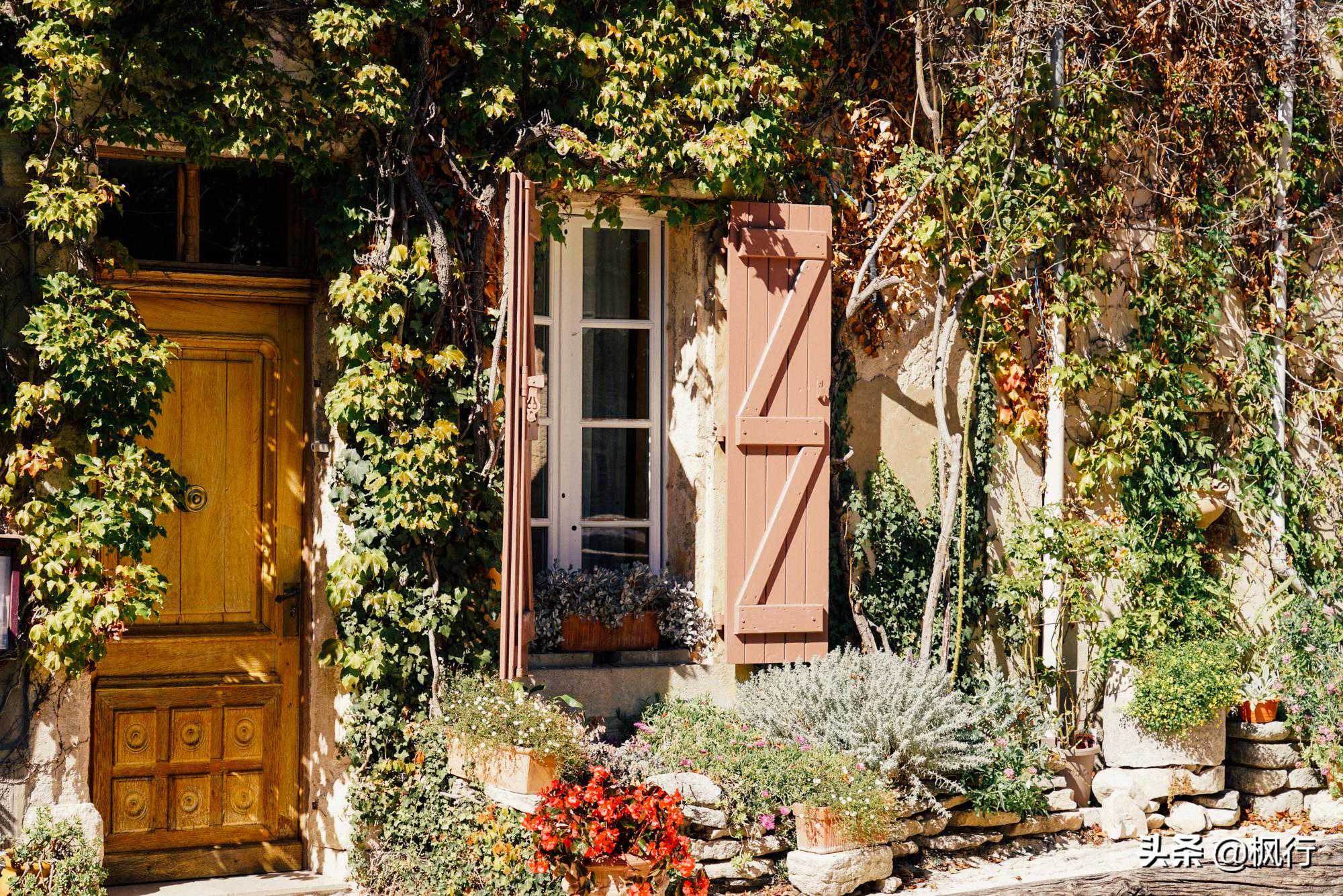 镇子里的房舍都有不短的历史,斑驳的石头墙壁和攀爬的绿色植物,四处开放的鲜花,织成了一幅美丽的法国乡村画卷。