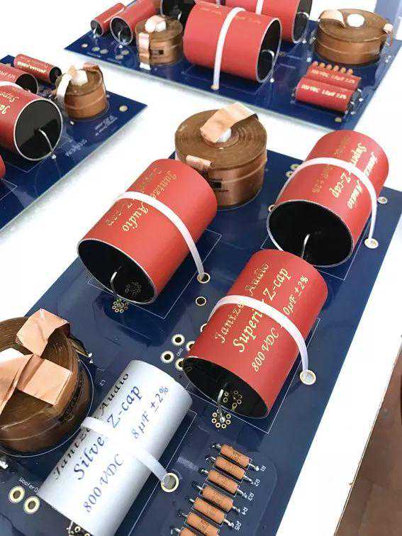 旗舰Statement的MTM模块分频器,红白色的Jantzen电容与巨大的铜箔电感都是天价补品元件