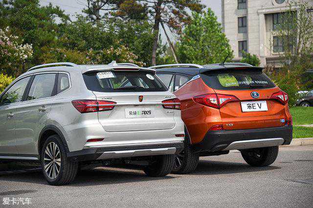 荣威ERX5和比亚迪宋EV300同属紧凑型SUV,大小比较接近。比亚迪宋EV300的三维尺寸要大一点,荣威ERX5则在轴距方面占据了优势。