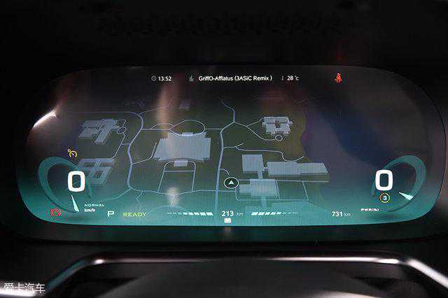 12.3英寸全液晶仪表盘显示效果精细,界面的设计也可圈可点。不过美中不足是,剩余续航里程的字体太小(仪表盘下部中间的位置),不够醒目,电池电量也没有精确的百分比显示。