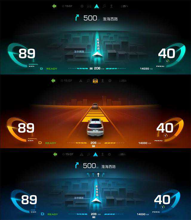 驾驶模式有3种,分别是标准、运动、节能。切换驾驶模式之后,仪表盘的主题颜色也会随之改变。