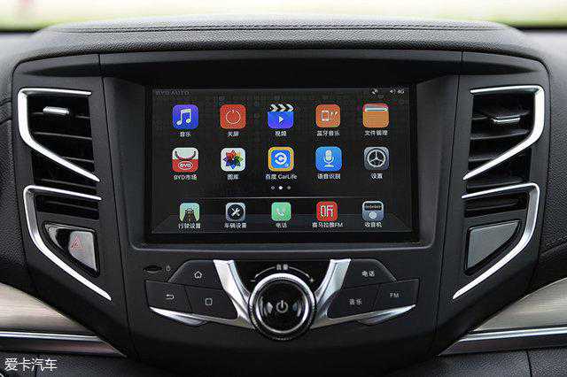 宋EV300的中控屏比较传统,但是基于安卓开发的车载系统有很强的扩展性,功能丰富。不足之处是界面和菜单逻辑有待改进。