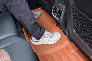 前排座椅位置不变,同一体验者坐入后排,头部空间剩余4指,腿部空间剩余大约2拳多1指。另外,这两款车的后排地板中央隆起都很小,后排乘坐3人毫无问题。