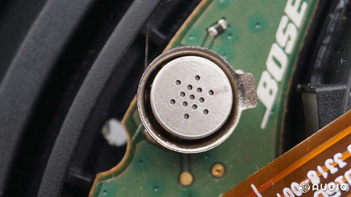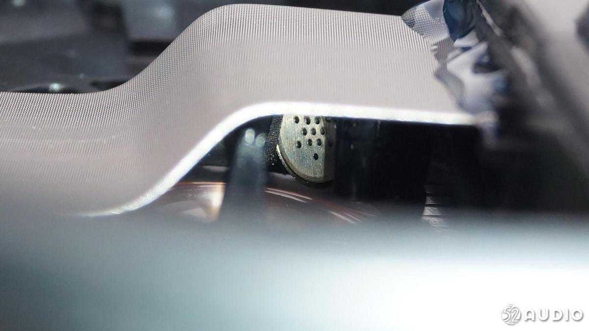 耳机单元振膜上面是一块硬质金属网,起到支撑和反射声音的作用给降噪麦克风。
