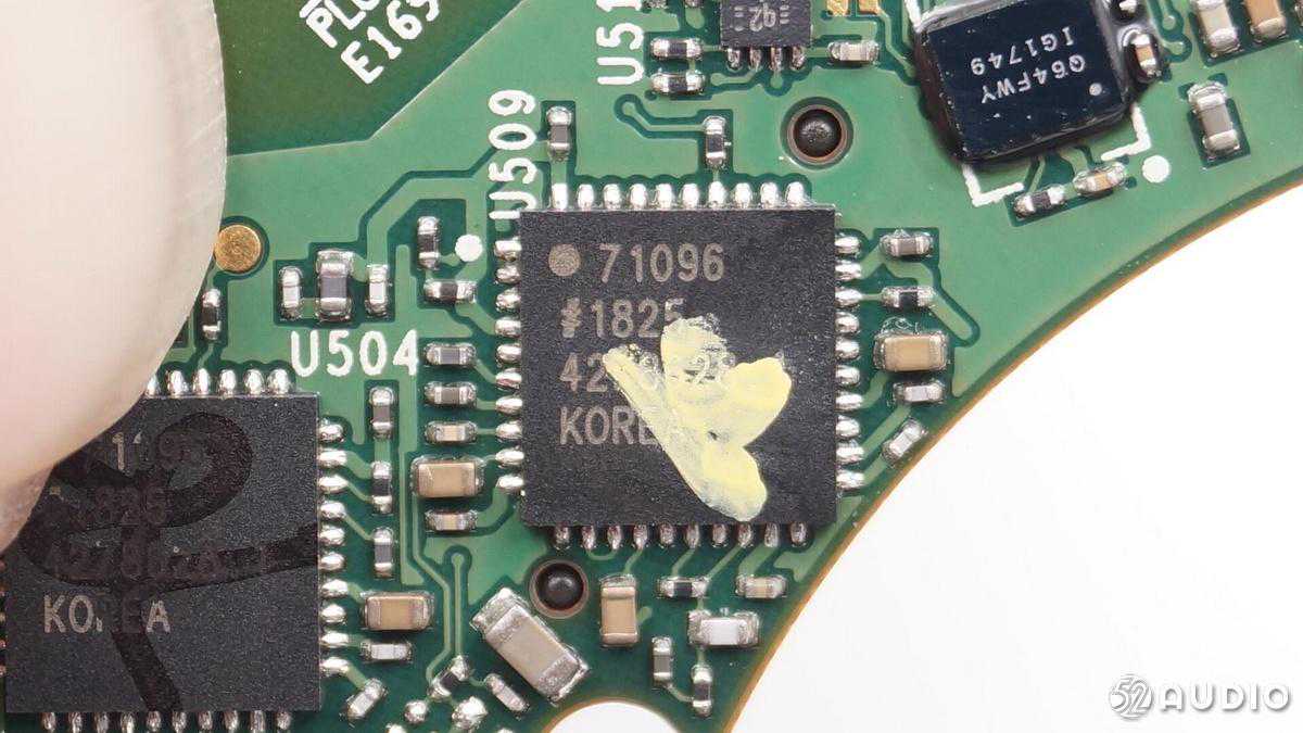 右耳电路板的背面是两颗DSP芯片,用于降噪功能。