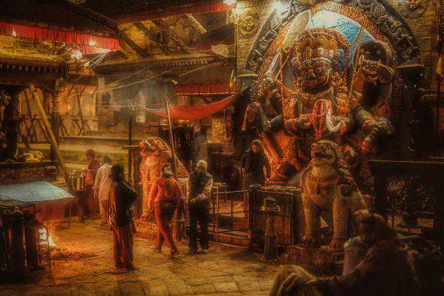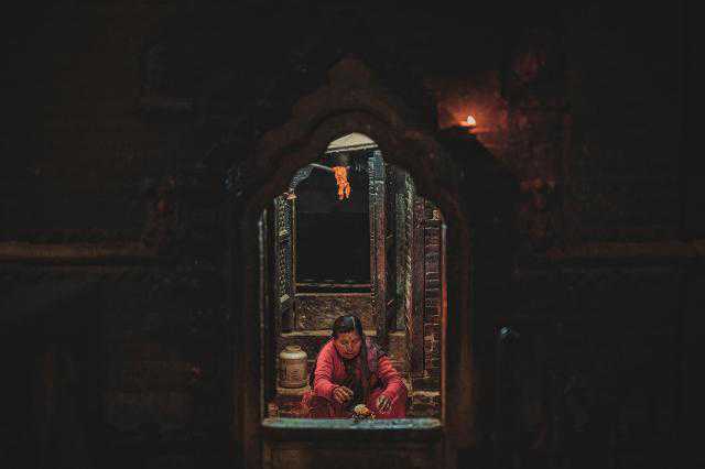 在尼泊尔,宗教信仰几乎占据了他们生命中的大半,我发现那些活过大半生的人依然在每天虔诚的祷告和虔诚于神,如果说在尼泊尔最门庭若市的地方,应该就是寺庙,无论是印度教寺庙还是佛教寺庙。早上4点半,要知道这可是我一个勤劳的风光摄影师起床的极限时间,然而这个时间下,尼泊尔的街头已经非常热闹,上面两张照片都是凌晨四五点时拍摄,鸣钟、祷告、拿着祭品祭拜神灵、点油灯,一整套下来太阳就快出来了。与伊斯兰教晨昏交替时祈祷不同,印度教的祭拜没有时间的限制,却更显的过程复杂繁琐。