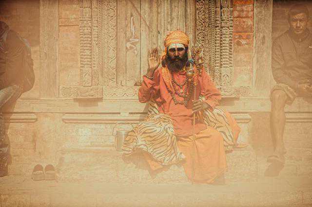 这样打扮的是一群自称可以通神的人,据说精神可以与神灵相同,但实际上会依靠吸食大麻来让精神处于迷幻状态。在广场上,会见到他们与游客合影来换取小费。我特意使用了比较虚幻的拍摄方式,因为当时拍摄突然,没有合适的前景,我就把手放在镜头前面,手指劈开靠近镜头,这样画面会有一种虚幻的的朦胧感。