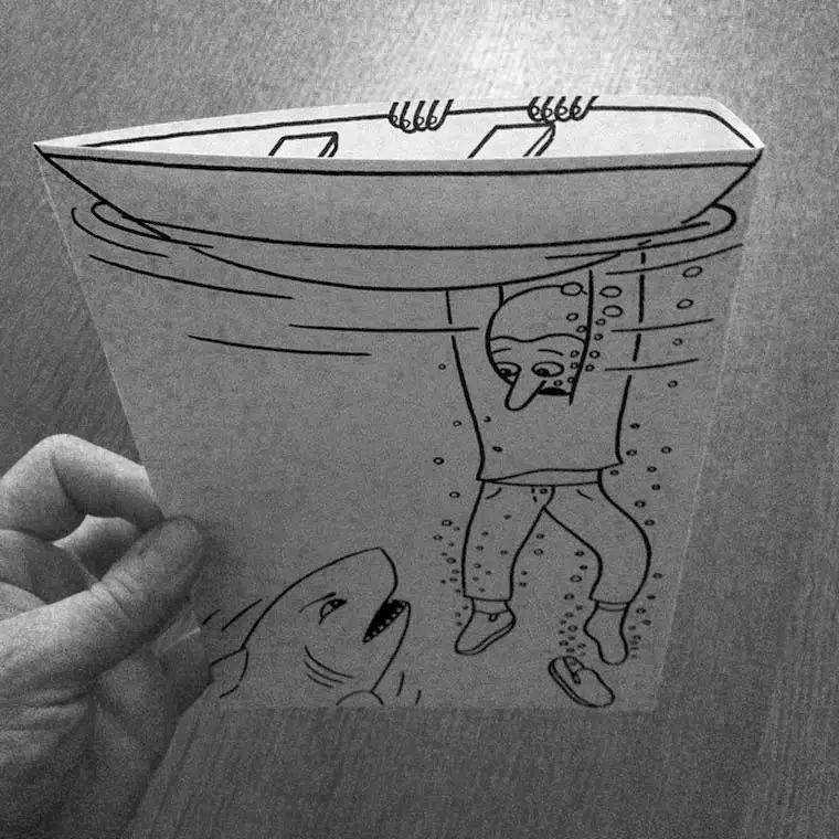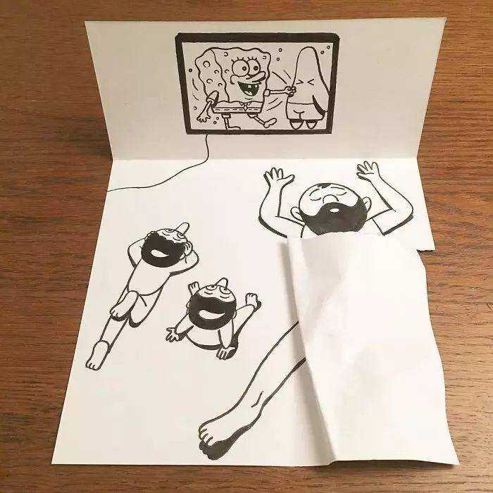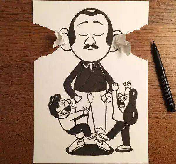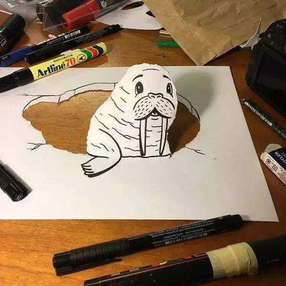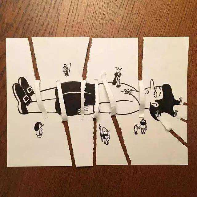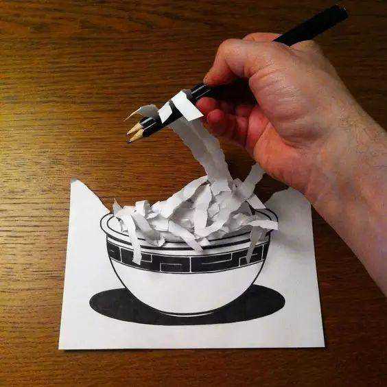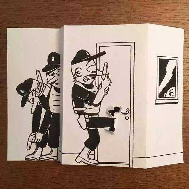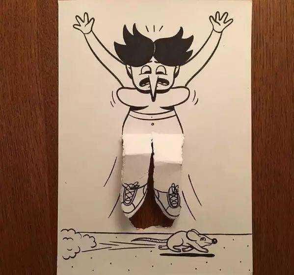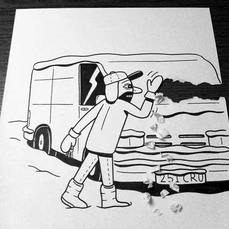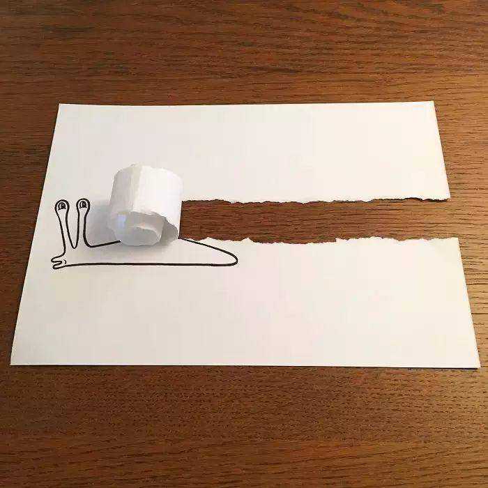 来自丹麦的插画师HuskMitNavn,他突破了“二维空间”的限制,在纸上「撕」出了三维立体的效果。