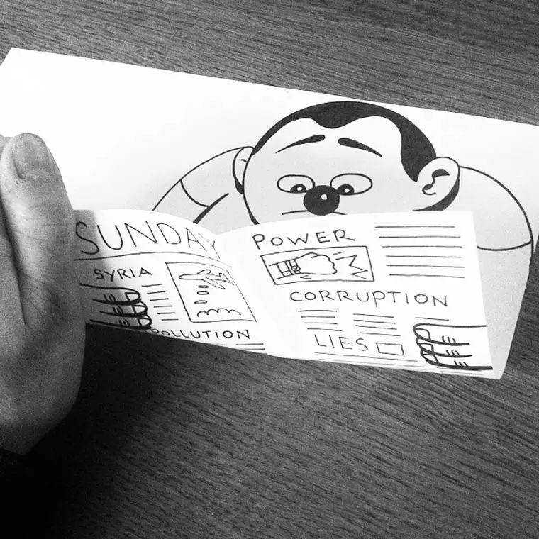 他不仅大量的在A4纸上作画还突破了“二维空间”的限制