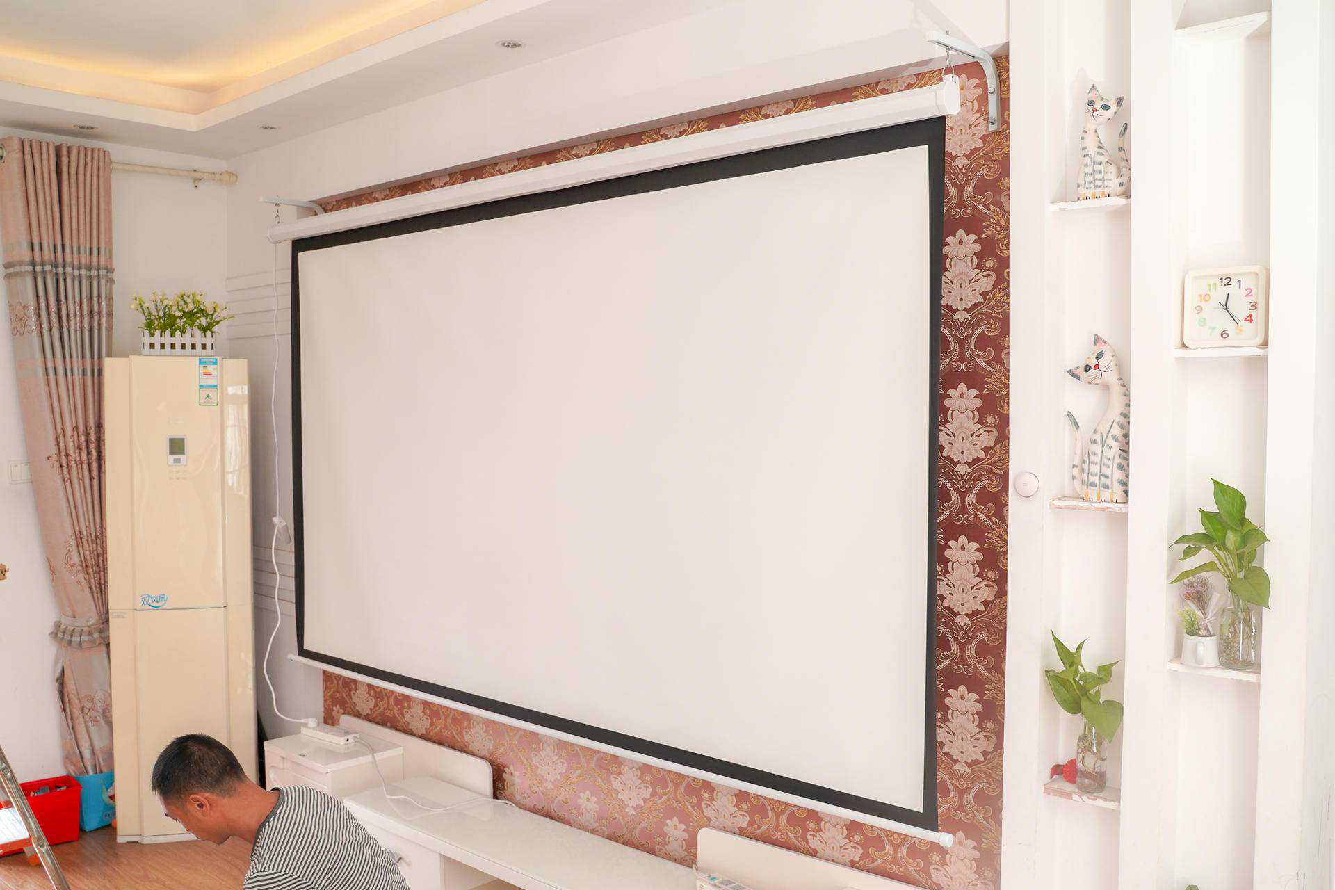 五、安装幕布,投影挂墙,旧屋改造,电视投影仪二合一。
