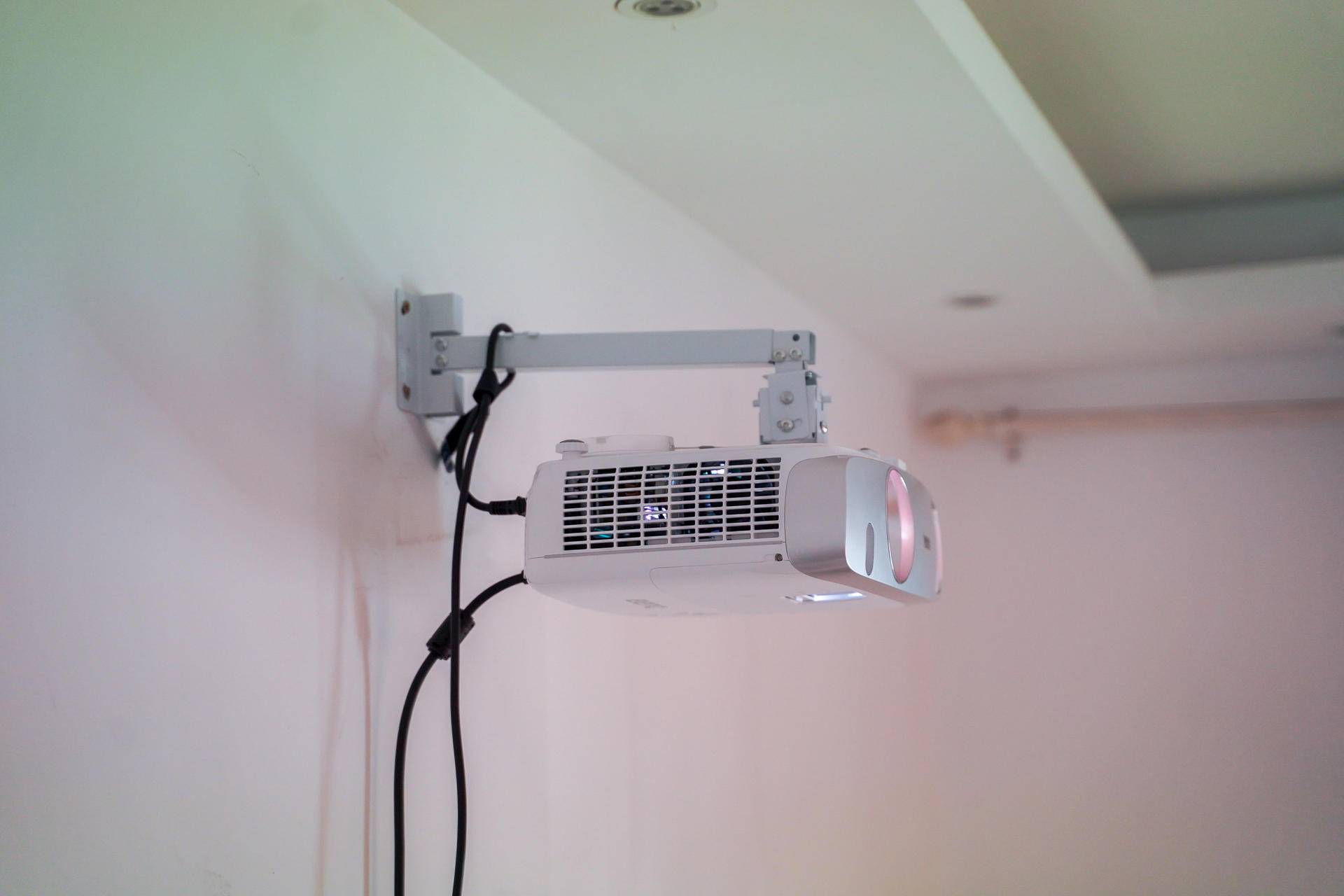 三、在不安装幕布的情况测试明基w1120投影仪的效果。