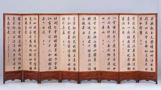 这副身长超过3米的清康熙·紫檀雕花嵌螺钿绣寿字围屏风(俗称“万寿瓶”),写着不同形式的寿字,总共两万余个,在此之前,它们已经封存300多年,多数已经残破不堪。万寿屏也叫万寿紫檀屏风,一共32扇,是康熙皇帝60大寿时,当时在世的16个儿子和32个孙子送的祝寿礼物,珍贵的紫檀木边框,彰显财富的螺钿镶嵌,镶铜寿字,透露出它的尊贵。屏风的背面非常罕见的用矿物质的石青颜料书写诗句,每扇有两人各题五言律诗一首,是康熙帝胤字辈的儿子,弘字辈的孙子为他作的祝寿诗,这其中就包括后来成为皇帝的雍正和乾隆。