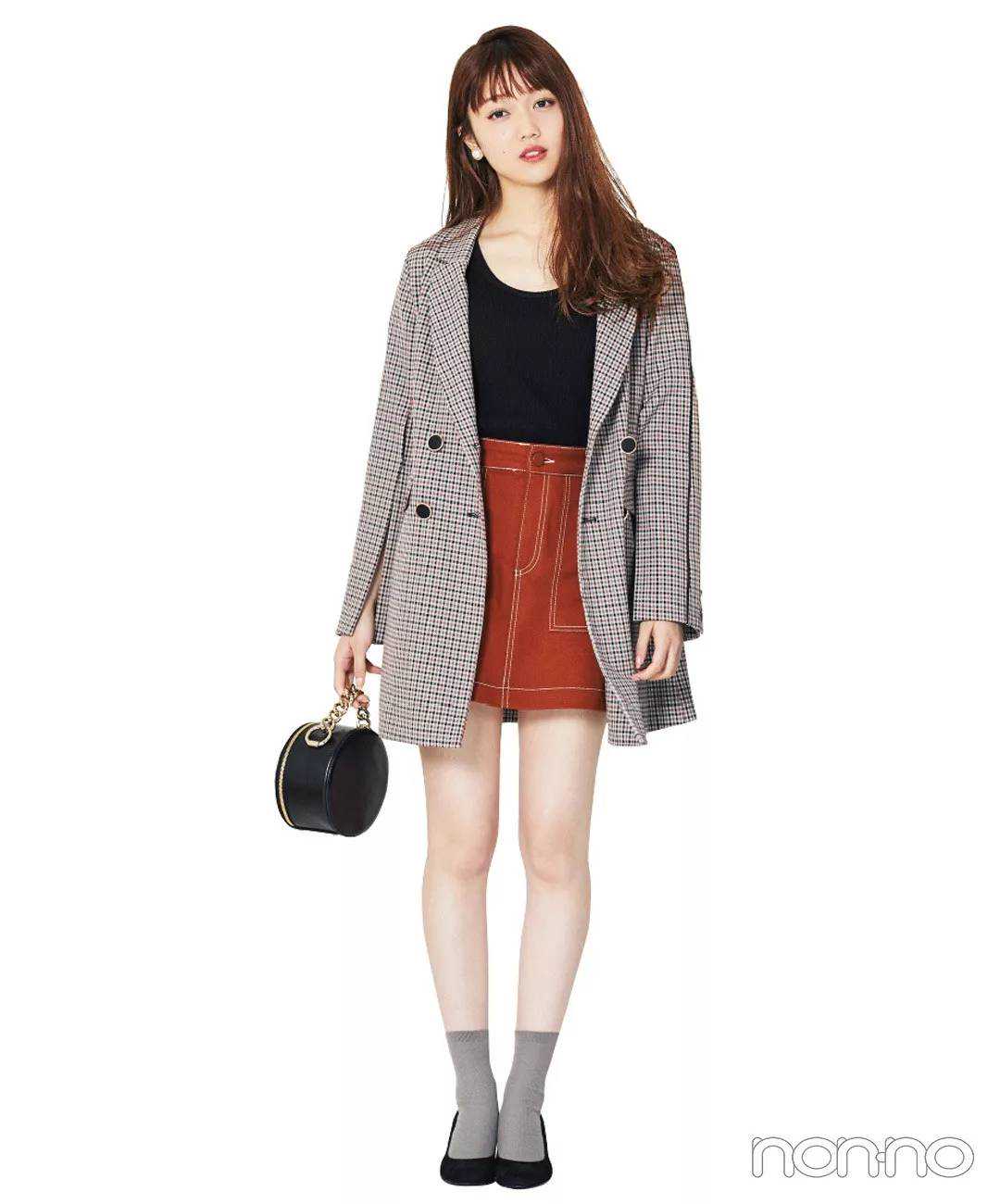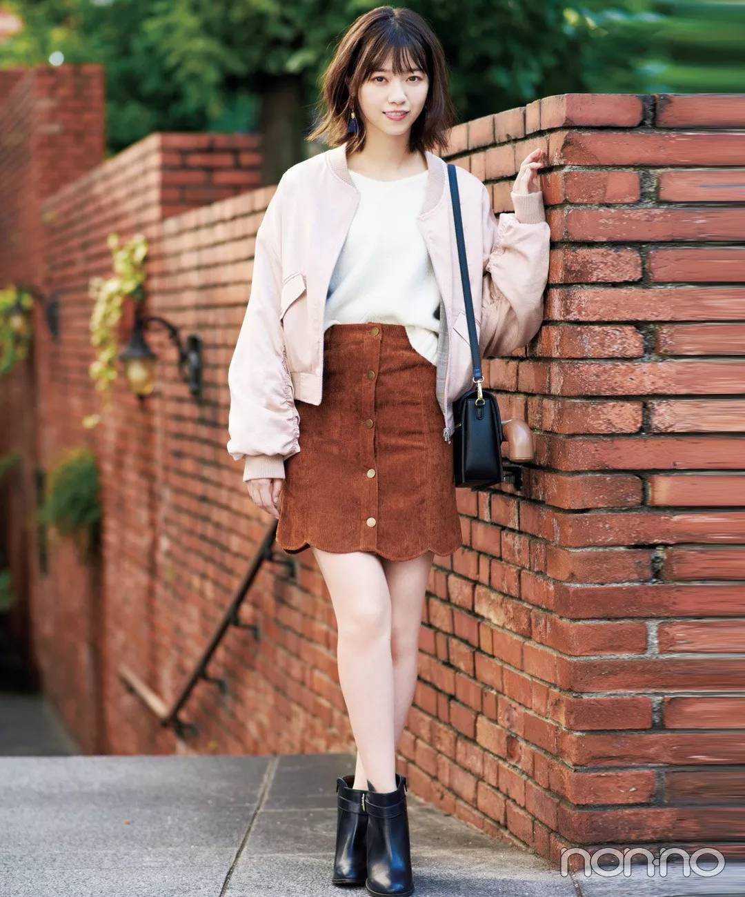 秋季色西装夹克与鲜艳色彩的迷你半裙穿出帅气Girly风