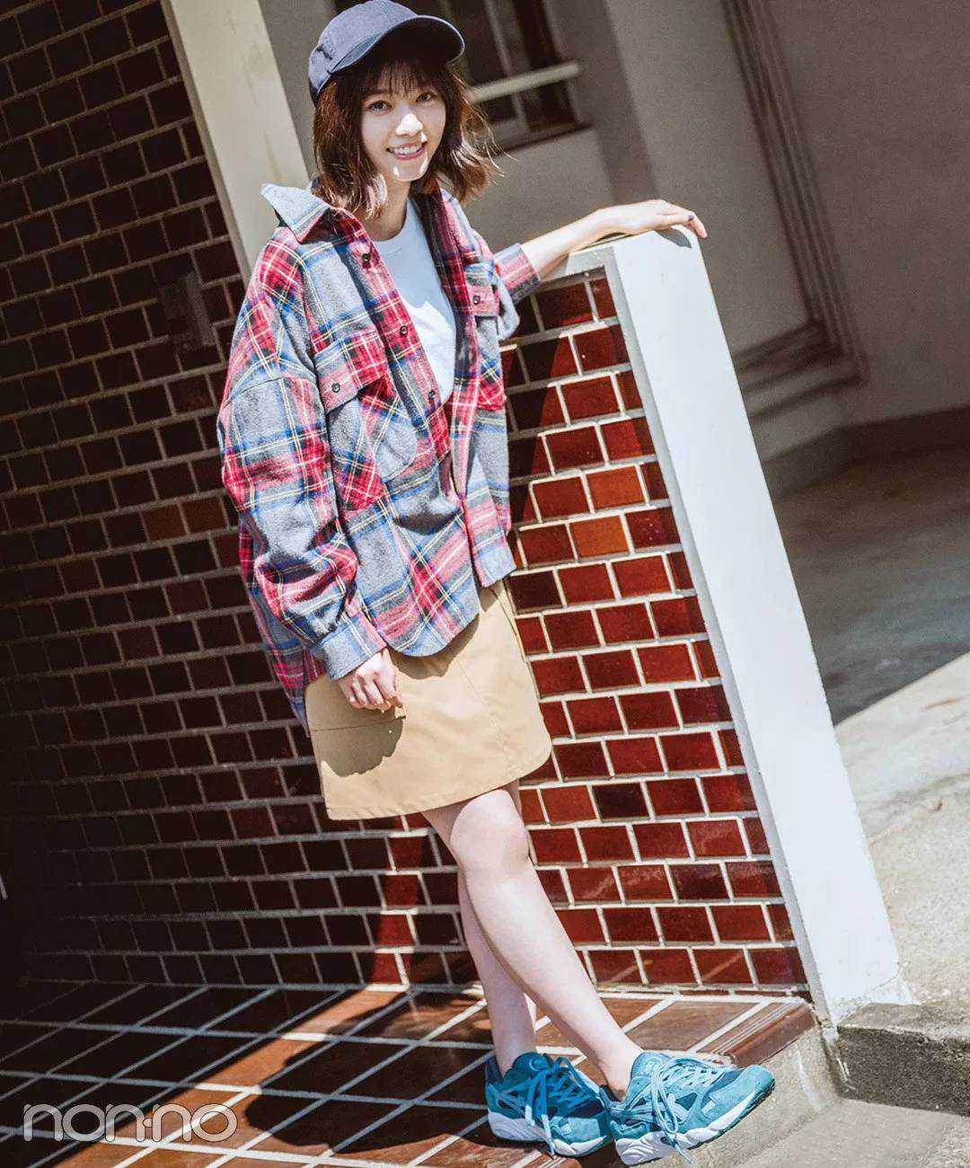 反复穿搭中非常人气的卡其色台型迷你半裙,与格纹衬衫搭配出时尚休闲风,棒球帽和运动鞋的轻松氛围元素,适合与朋友外出游玩的穿搭哦!