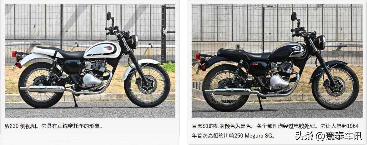 川崎的W230和MeguroS1(以下称目黑S1)在去年日本移动展(JapanMobilityShow2023)上首次亮相,它们是2017年停产的风冷250cc新古典车型Estrella的继任车型(在海外以W250的名称继续存在)。川崎宣布目黑品牌将于2024年秋季左右正式上市,为目黑品牌创立100周年献礼。标志着250级市场新古典主义车型的兴起。