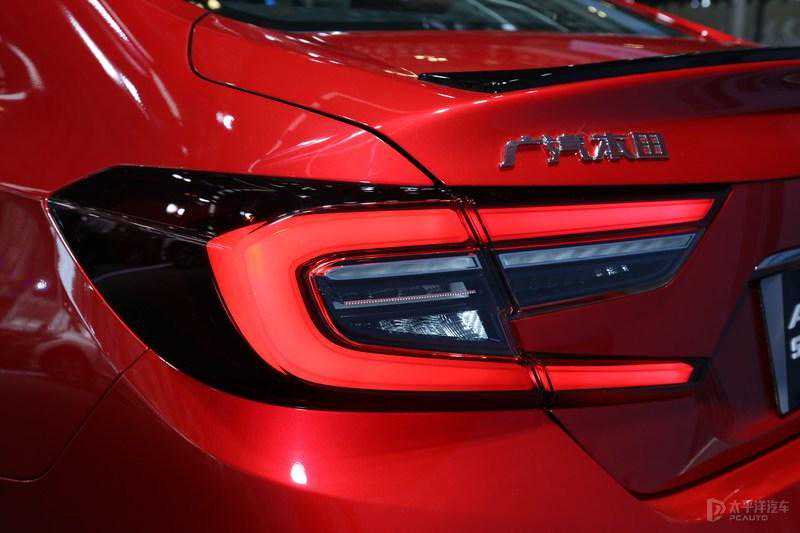 车尾部分,新车在尾灯上略微进行了熏黑的处理,同样保留了双边双出排气系统,但排气孔取消了镀铬装饰。新车在混动版和燃油版车型的车尾方面有着略微差异,混动版车型尾部采用的是封闭样式的白色包围,并且还有黑色饰条贯穿包围,整体造型相比燃油版车型显得更加优雅,同时在车标上也采用了不同的底色。