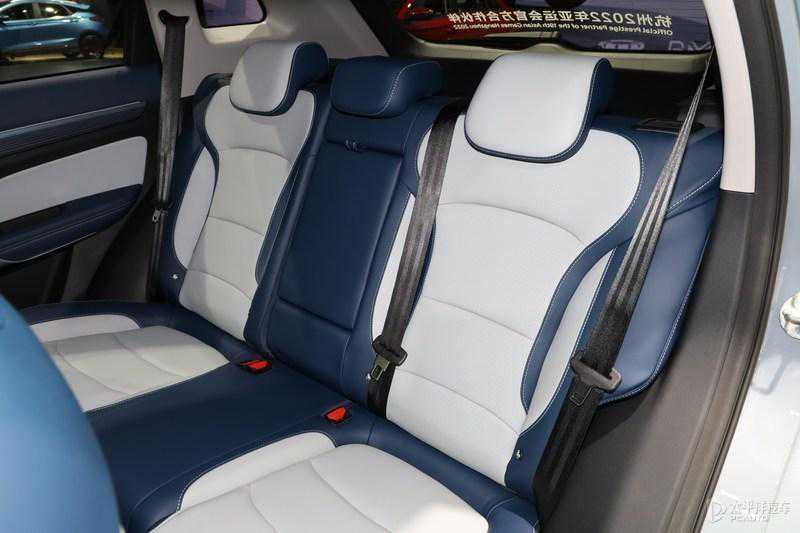 新车内饰采用了悬浮式中控屏设计,加上蓝黑双色的配色拼接,以及荧光黄色的装饰条和安全带,营造出精致、高级的质感。