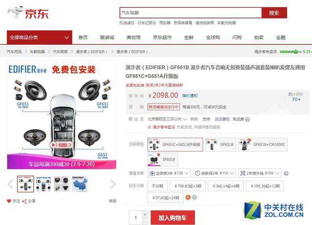 眼观六路耳听八方,在行车过程中汽车音响是驾驶员的好伴侣,可以听广播了解资讯,挺音乐舒缓心情。漫步者GF651C+G651A升级版音响可无损换装,满足您极致的聆听需求。现京东商城报价2098元,有意向的。