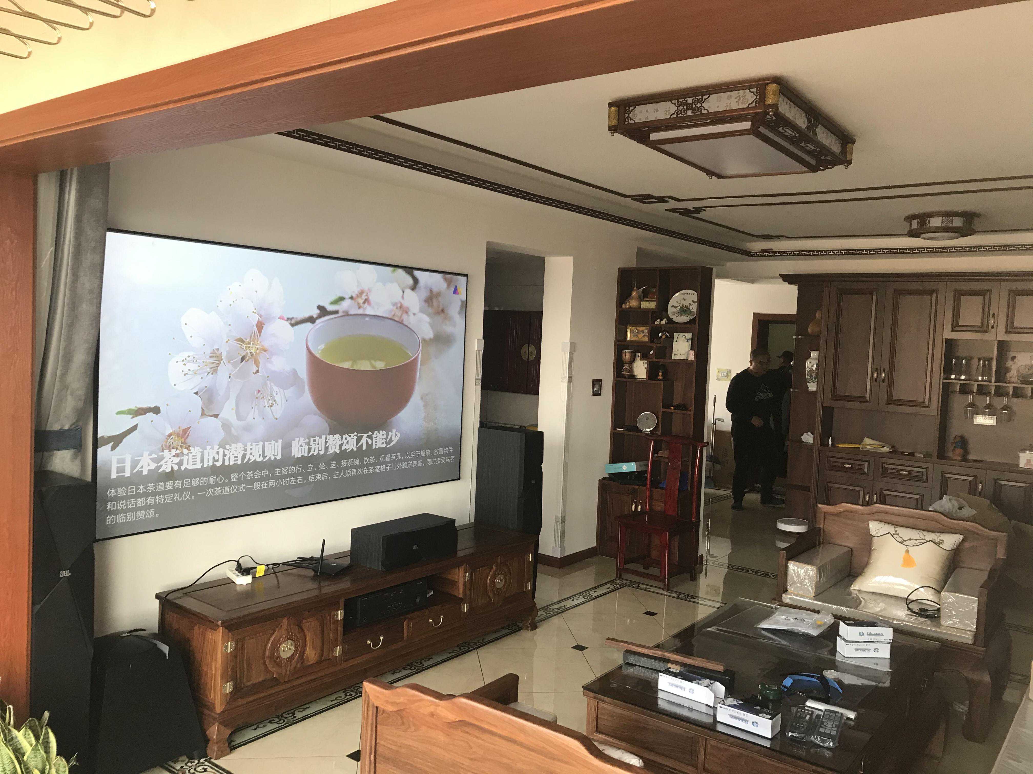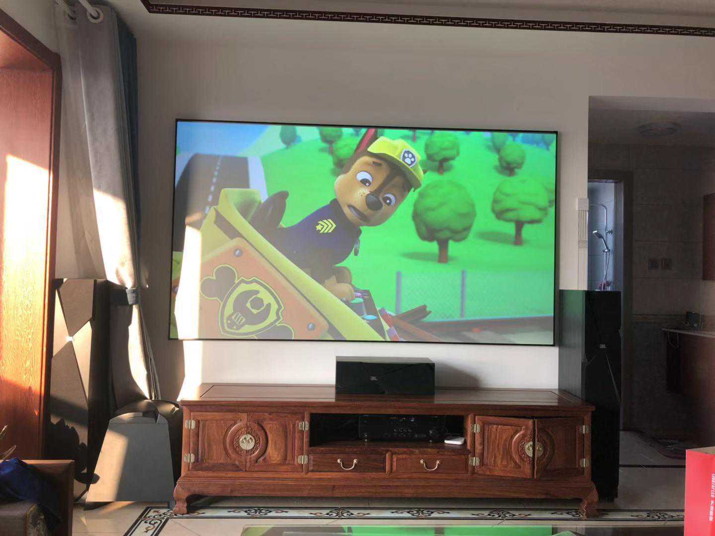 案例七:人特别好的一大哥,从陌生到朋友,题外话——没交房的时候到我们展厅了解过,没定之前就帮忙介绍成好几单客户,屏幕定制的88寸,比较过觉得屏幕太大接受不了,关于屏幕大小真的看个人感受来选择,就像去电影院有人喜欢坐前三排,有人喜欢坐后排一样。不要以你的标准来要求别人,不过可以肯定的是屏幕越大真的越震撼。