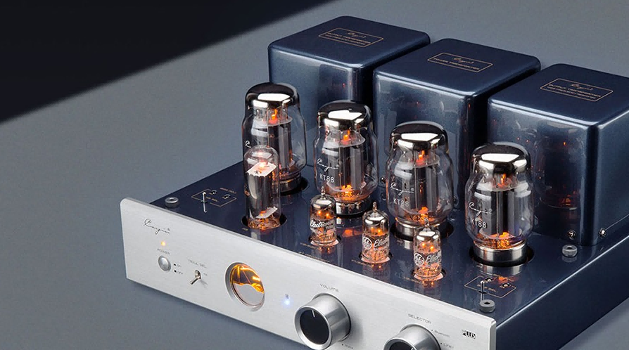 HYM-RAYS黑胶电子管音响拥有三颗电子管,分别是1根进口的捷克电子管JJECC83和2根捷克电子管JJECC82。环流变压器驱动电子管,配置日本、德国等进口电容器,能够做到100%输出。