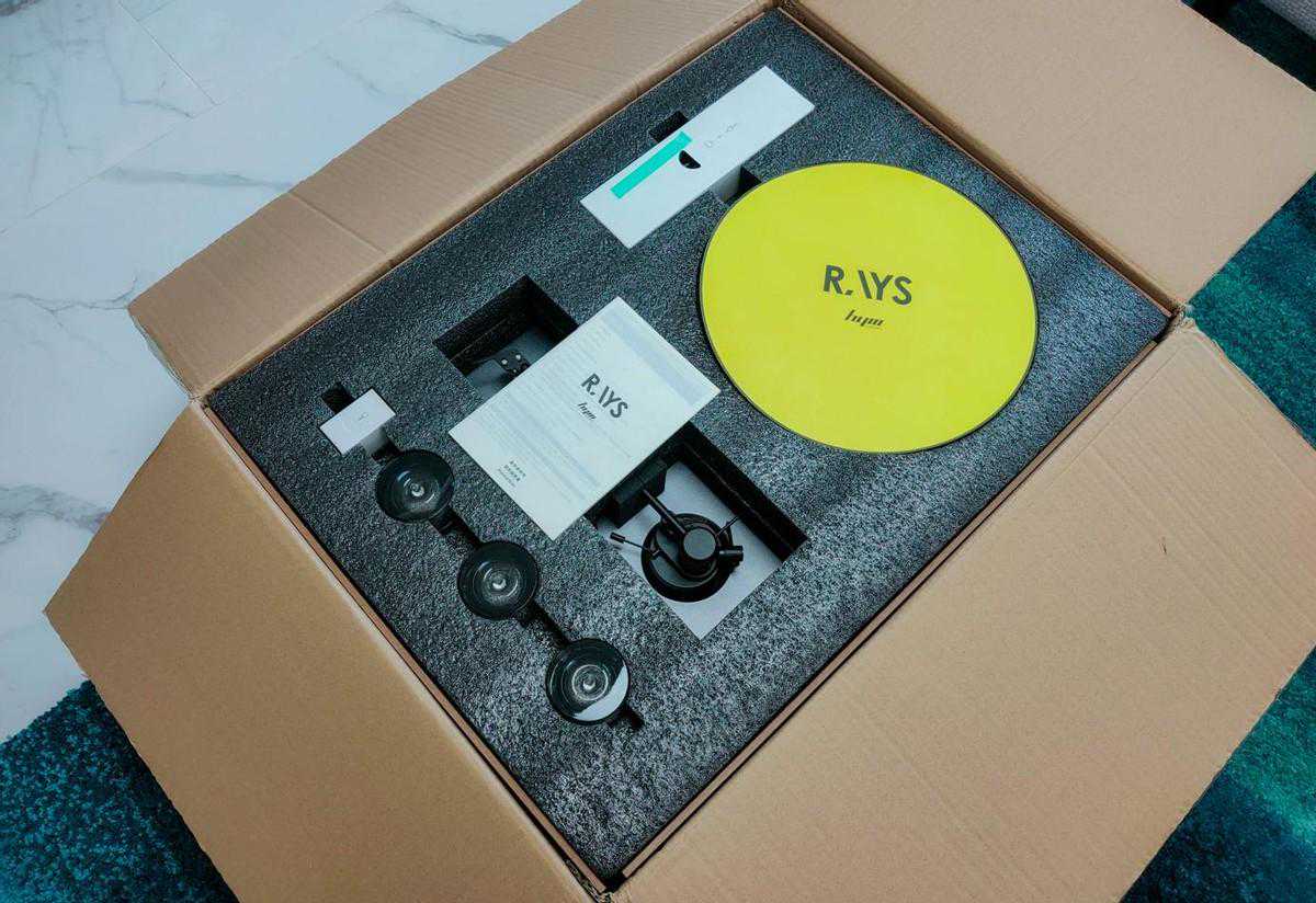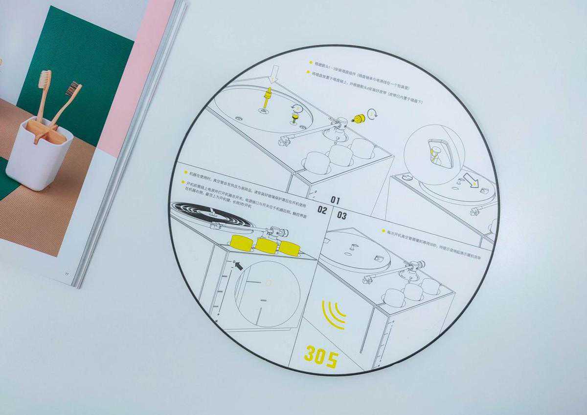 为了帮助新手快速安装唱盘和配重铁,HYM-RAYS黑胶电子管音响额外增加了一张与唱盘同尺寸的快速安装指南,根据相关指引即可轻松安装好唱片机结构。
