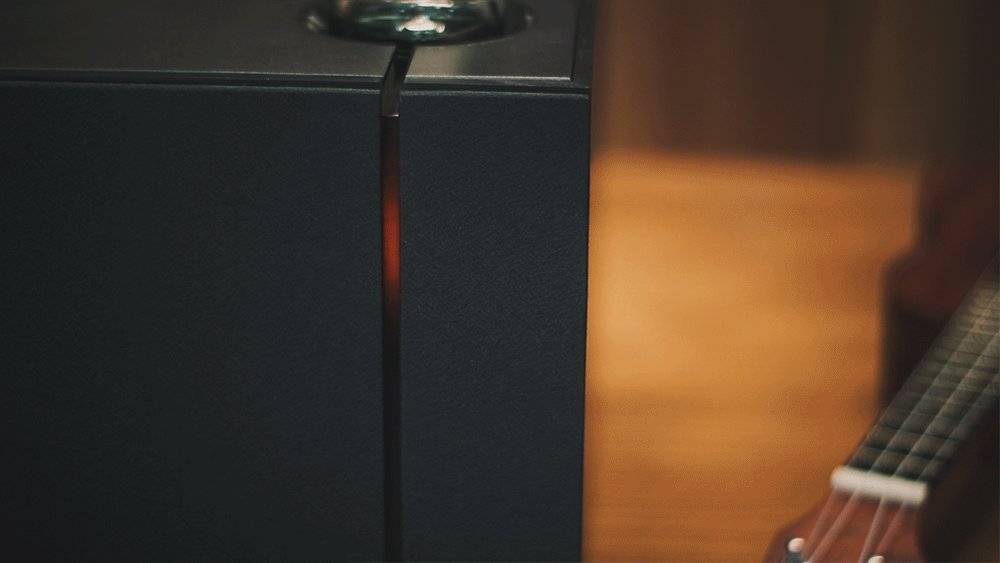顺着电子管的机身剖面透光灯槽,延伸到机身正面是一道穿透机身的半透明灯槽,让钨丝灯的灯光一直延伸至整个机身,可以说这心机的透光设计会让我们整个家居环境因为有了HYM-RAYS黑胶电子管音响而变得“温暖”。