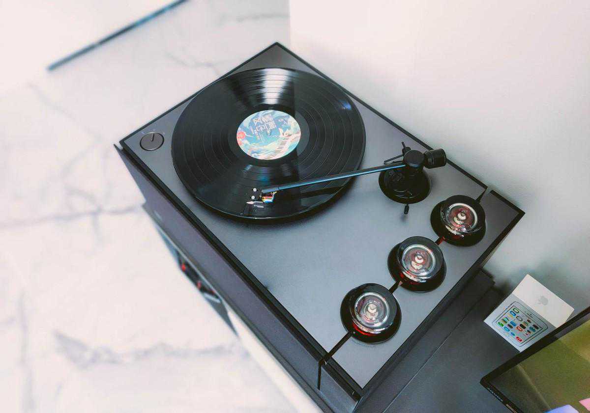 在听感上,黑胶唱片听起来会感觉更温暖,音色更加柔软,拥有天然的空灵感和现场感。这也是无数发烧友追随黑胶唱片的根本原因之一。而黑胶唱机自然便是将储存在黑胶唱片里声音播放出来的设备,黑胶唱机主要由盘、臂、头三大件组成。
