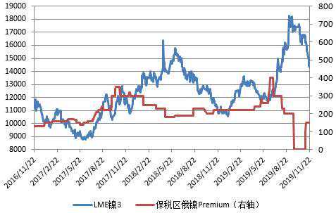 11月份,保税区贸易升贴水整体表现为低位逐渐抬升,月内贸易升贴水维持在0-200美元/吨,月度环比大幅抬升。贸易升贴水的抬升,一方面是由于进口窗口的持续打开,且进口盈利幅度较大,导致进口需求有所增加;第二,国内范围供需整体表现为供应过剩,一定程度上对贸易升贴水有所抑制。在国内供应过剩的情况下,国内之于精炼镍需求仍在低位,则预计12月份国内保税区贸易升贴水将保持在较低水平。