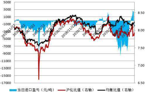 11月份,国内精炼镍进口窗口表现为先打开再关闭,沪伦比值表现为先抬升后回落。进口窗口的打开表现为镍价回落的过程中外盘跌幅大于内盘,内盘的back结构影响较为明显。汇率的变化在本轮比价前期的回落过程有所体现,表现为人民币的升值,从而一定程度上抑制了比价的抬升。预计12月进口窗口整体将保持关闭状态。