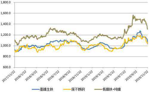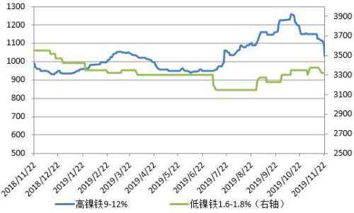 镍铁方面,11月份国内高、低镍铁整体表现有所分化,主要表现为高镍铁的连续回落,而低镍铁则先涨后跌。高镍铁月度累计下跌幅度为10.82%,低镍铁月度累计下跌0.75%。