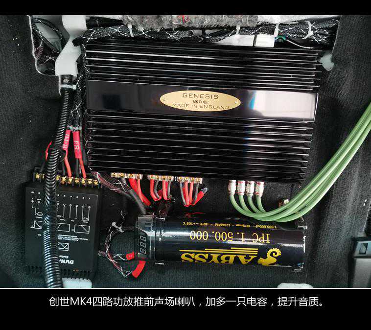 创世纪功放MK4安装在座椅下,声音还原精准,真实。增加一只电容,来提升音质。