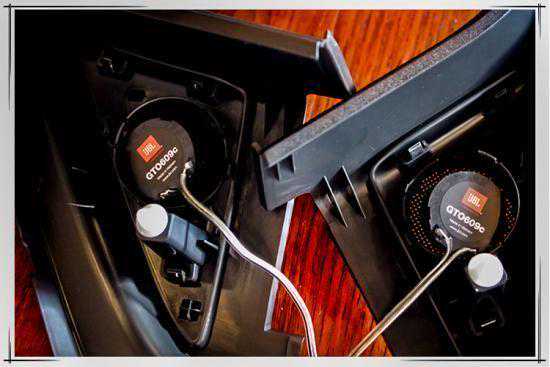 后门我们安装了一对同品质的JBL同轴音响,让后排的乘客也能享受不错的音质效果