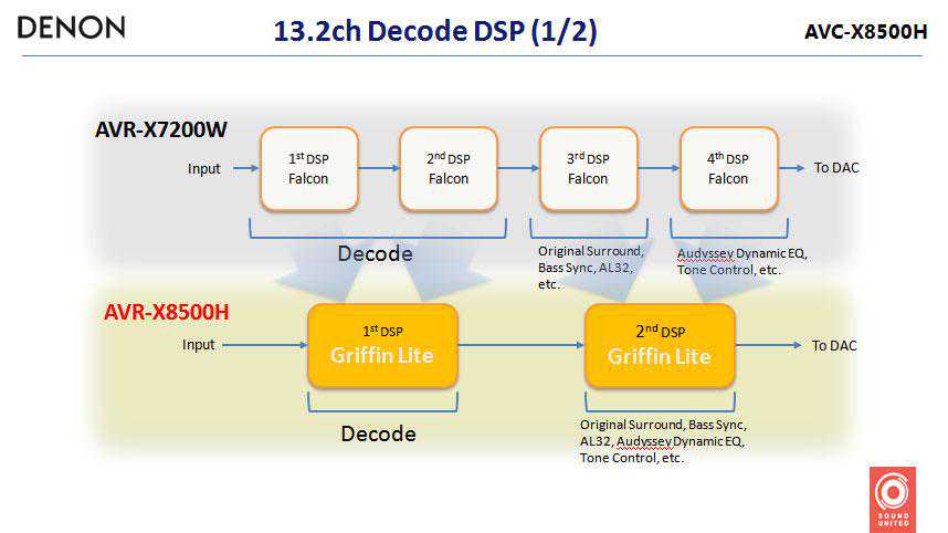 而最新的AV8805是世界上第一台支持HEOS的13.2声道家庭影院功放产品。