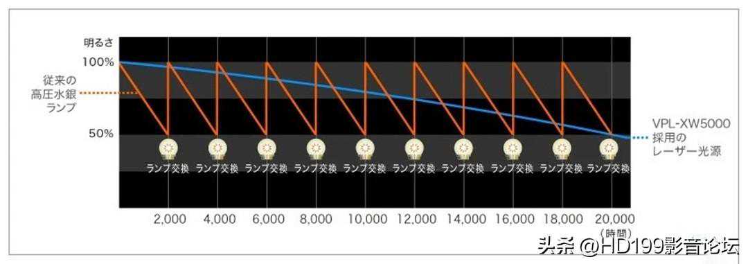 VPL-XW5000使用超高纯度且可靠的“Z-Phosphor(TM)”激光光源,亮度为2000lm(流明),高纯激光光源几乎不需要维护,可在较高亮度下不间断投影优质清晰的4K图像长达20,000小时。