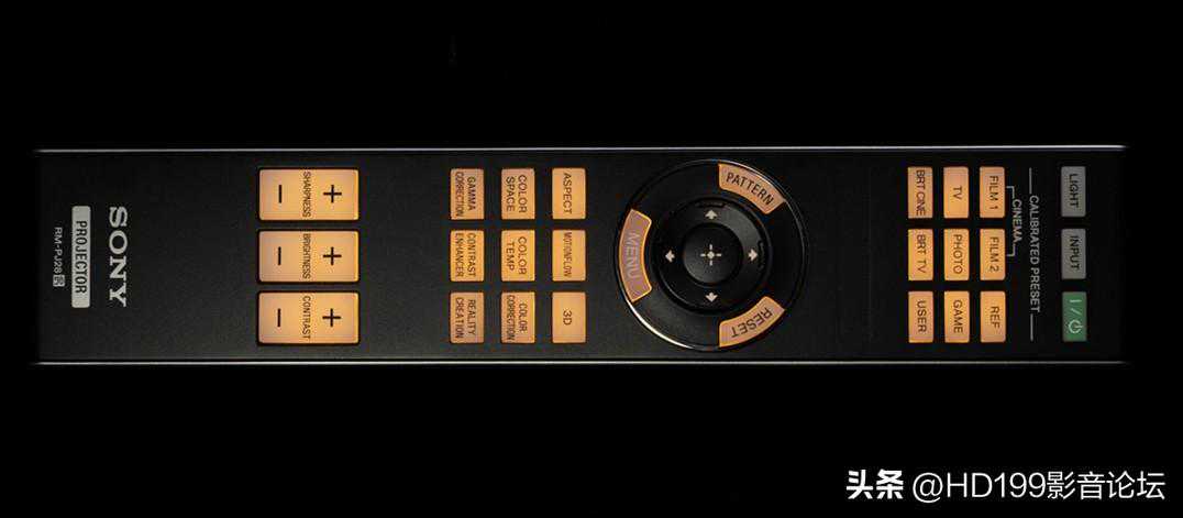 遥控器手感不错,自带背光按键照明,光线柔和,非常适合暗光环境下使用。常用的调整画面的功能都集成在面板上,设置科学,使用方便,我在校色时体会特别深。