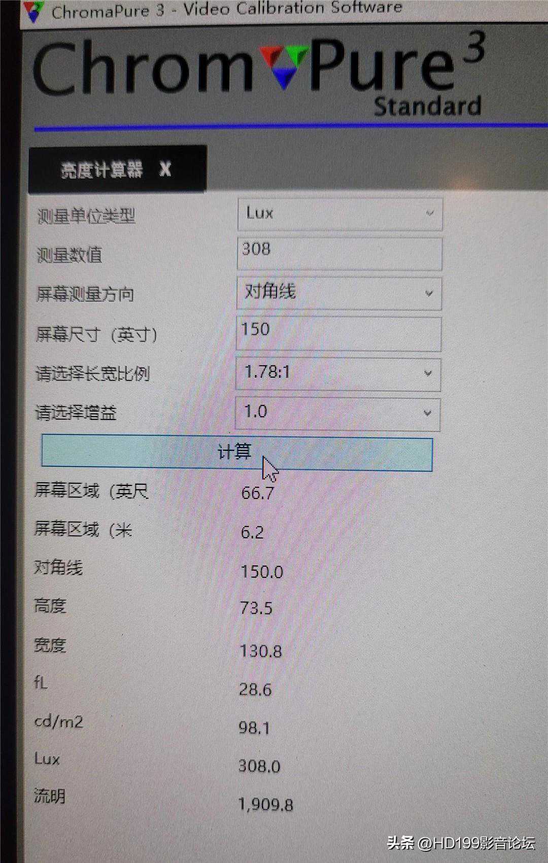 这也是大家比较关心的问题,厂家有没有虚标,机器真实亮度到底如何?我先说测量结果,校准后的流明输出是1910LM,和厂家标称的2000LM非常接近。特别强调的是,这是校准白平衡和色彩后的数值,整机可用光效非常的高!