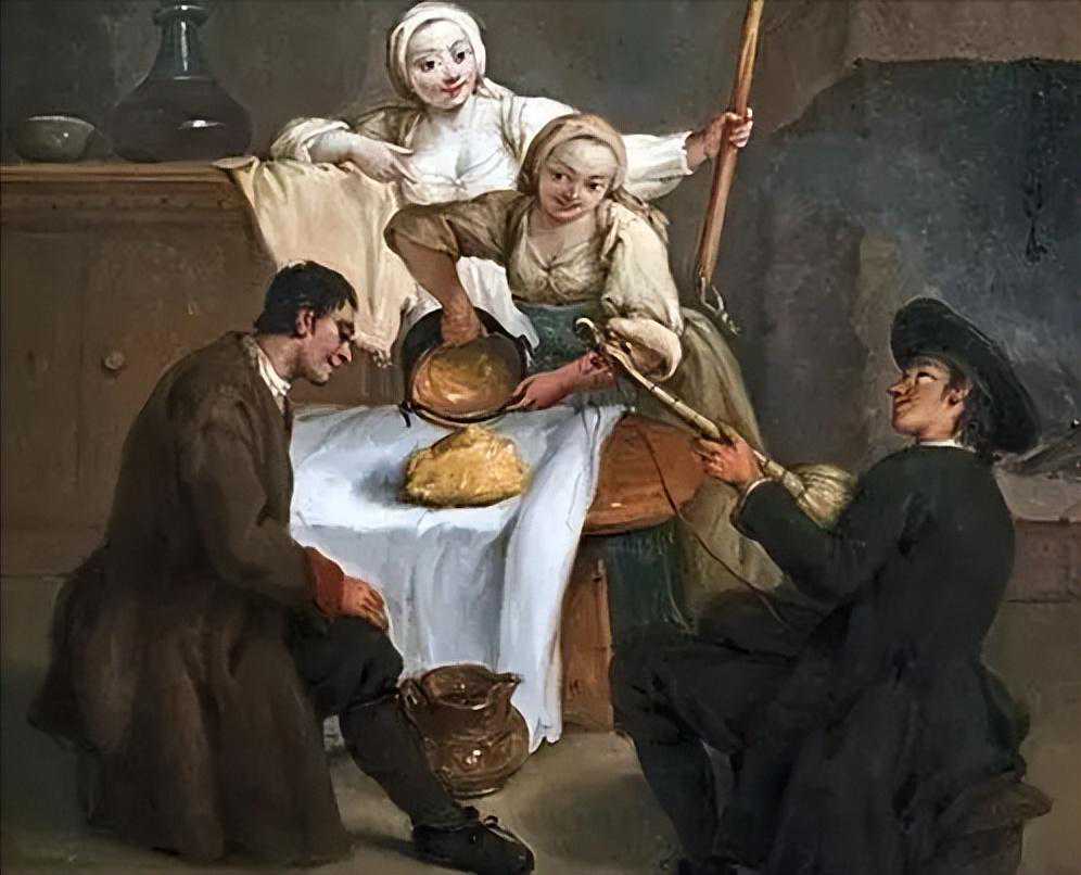 上午11点左右吃了一顿小午餐。这是他们一天的主餐。他们可能吃过一种叫做维斯佩纳的夜宵。